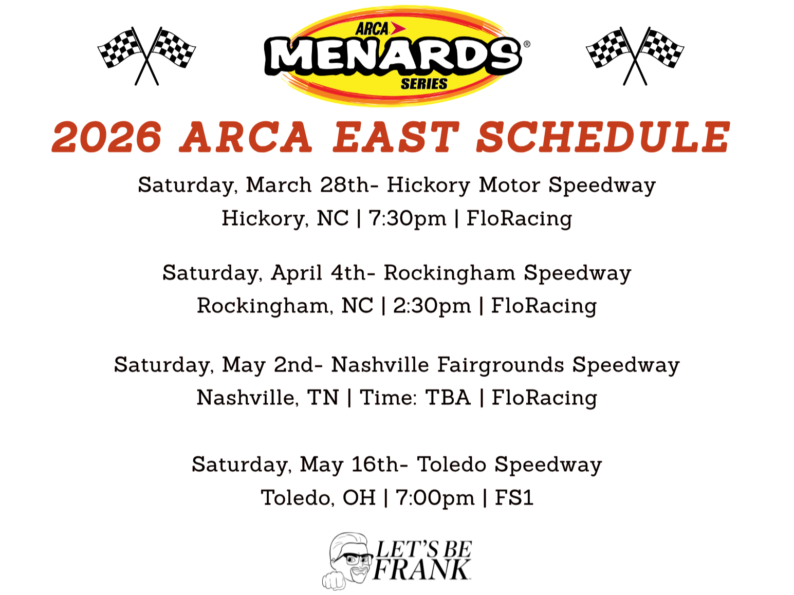 The 2026 season began with a brief introduction to the ARCA Menards Series, and shortly after, Craig was fortunate to join Letβs Be Frank to chase his dream of becoming a professional American stock car driver in a NASCAR national series. He looks forward to reaching major milestones, connecting with fans, and soaking in every moment of the exciting season ahead while driving for Fast Track Racing in the ARCA Menards Series East with title sponsor Letβs Be Frank.